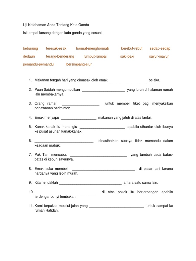Contoh Soalan Kata Ganda Separa Berimbuhan
